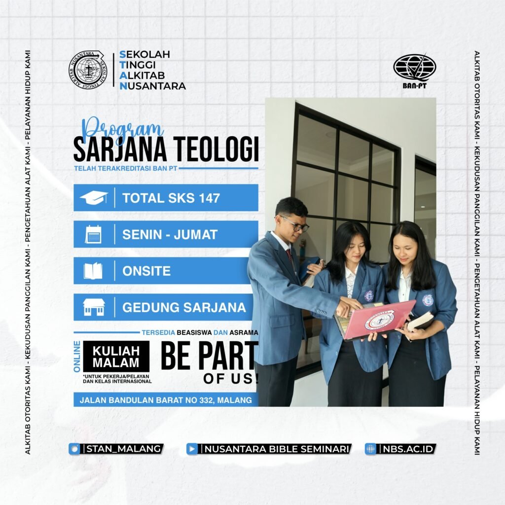Sekolah Tinggi Alkitab Nusantara (STAN) berdiri atas dukungan Yayasan Pekabaran Injil Nusantara (PINTA), yang bekerja sama dengan OMS Internasional bertempat di Malang, Jawa Timur. STAN berdiri pada bulan Maret 1975, bertempat di Jln. Retawu no. 4 Malang dengan nama PUSAT LATIHAN THEOLOGIA NUSANTARA (PLTN) yang memiliki program kuliah 3 tahun. Kemudian program kuliah ini ditambah 1 tahun untuk tugas praktek.